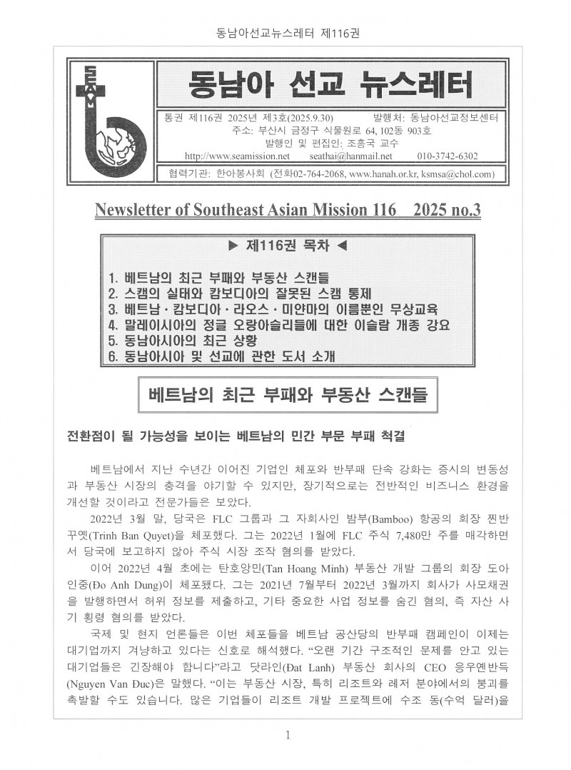 동남아선교뉴스레터 116권이 발간되었습니다.