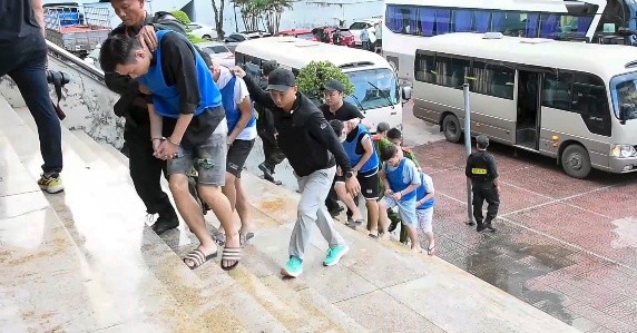 골든트라이앵글의 스캠 센터에서 라오스 경찰에 체포된 중국인 범죄자들